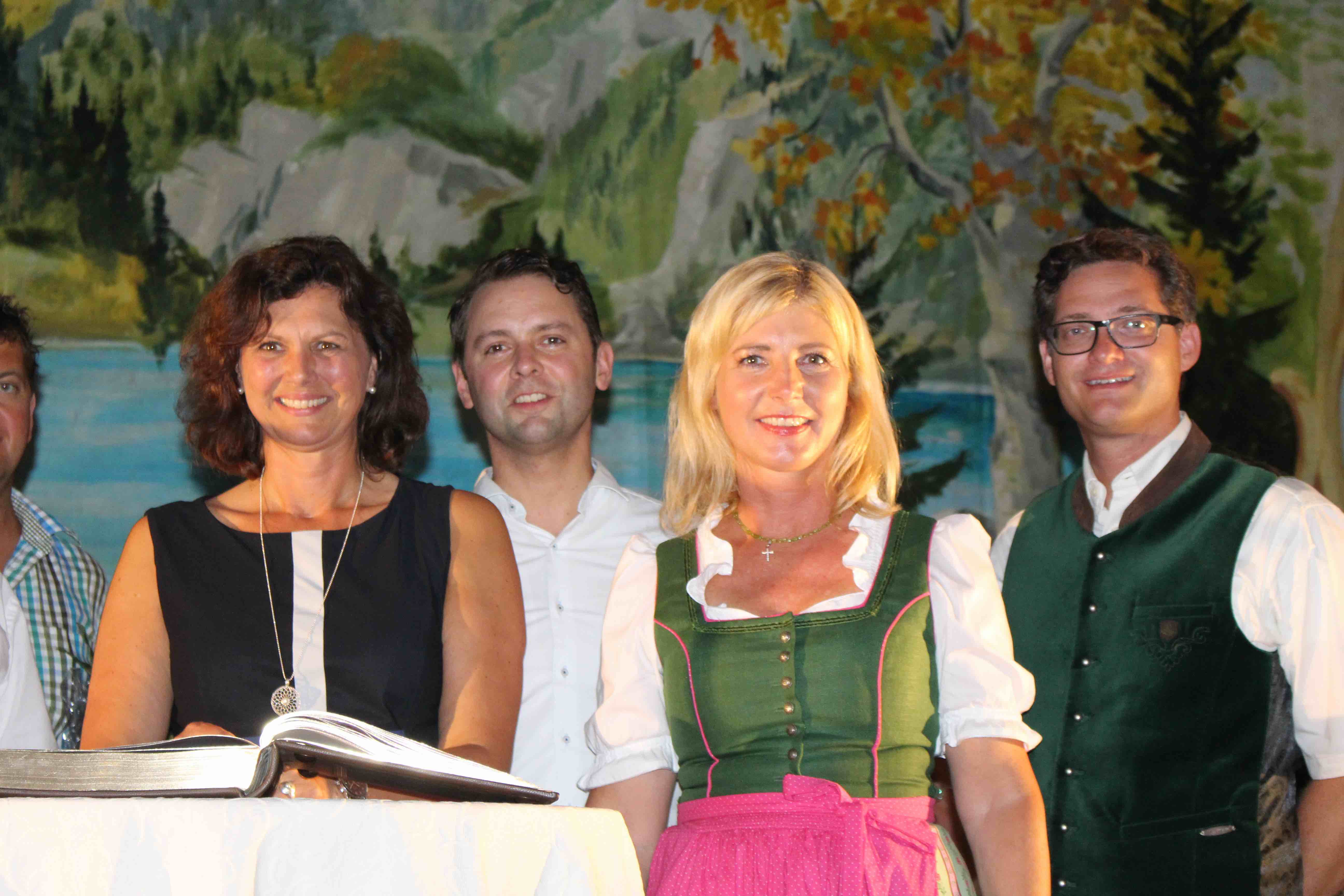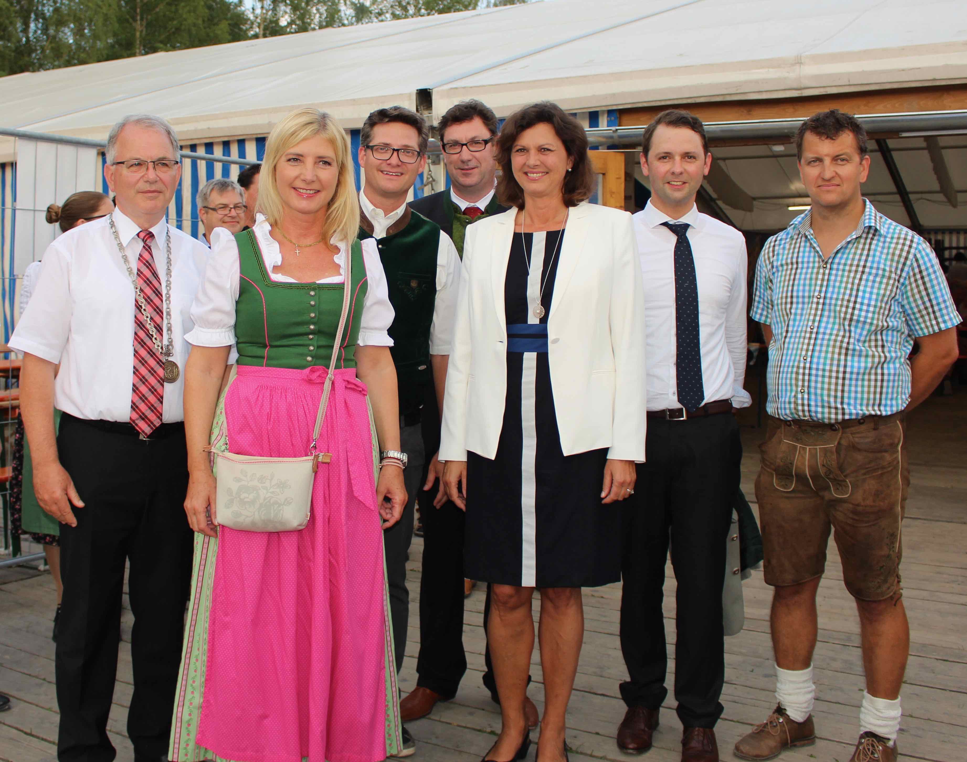 Empfang der stellvertretenden Ministerpräsidentin und bayerischen Staatsministerin für Wirtschaft und Medien, Energie und Technologie Ilse Aigner durch Bürgermeister Manfred Ranft, Staatsministerin Ulrike Scharf, CSU Ortsvorsitzender Dr. Markus Straßberger, Landrat Martin Bayerstorfer, Bundestagsabgeordneter Andreas Lenz und Christian Pröbst (Personen von links nach rechts)