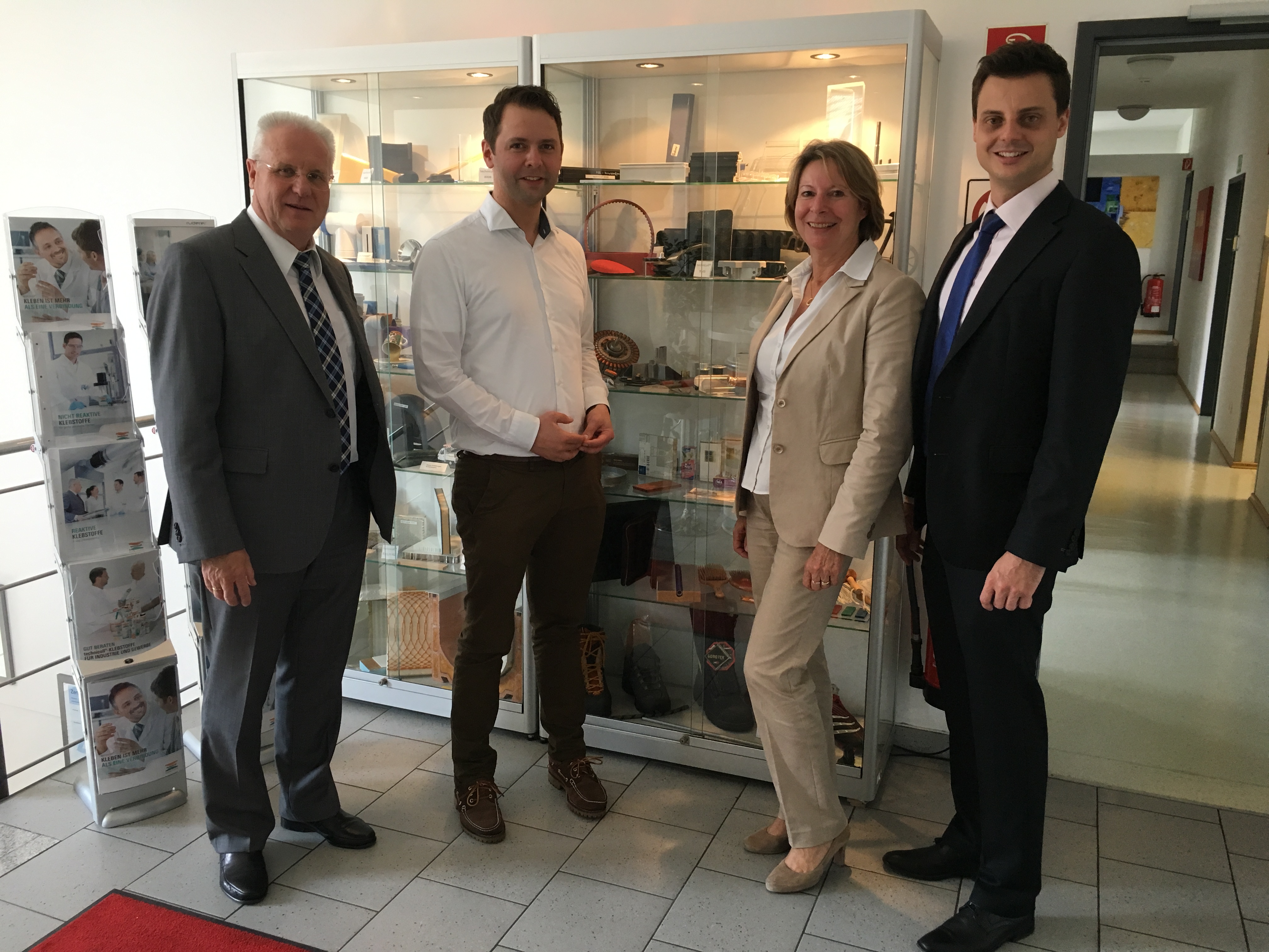 Anhand vieler Beispiele erklärte die Familie Ruderer dem Abgeordneten, wo uns im Alltag überall Klebestellen begegnen. Die Firma Ruderer produziert und entwickelt bedarfsorientiert Spezialklebstoffe für verschiedenste Industriezweige. Neben der Fahrzeug-, Elektro- und Elektronikindustrie werden auch Schiffsbauer oder Maschinenbauer beliefert.