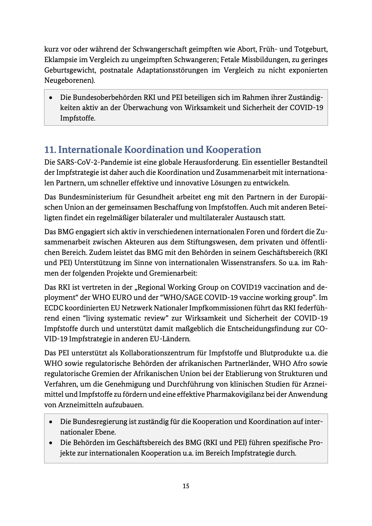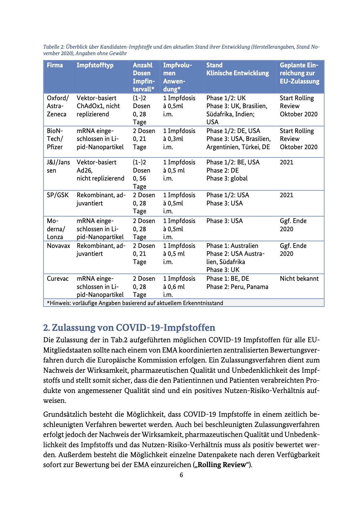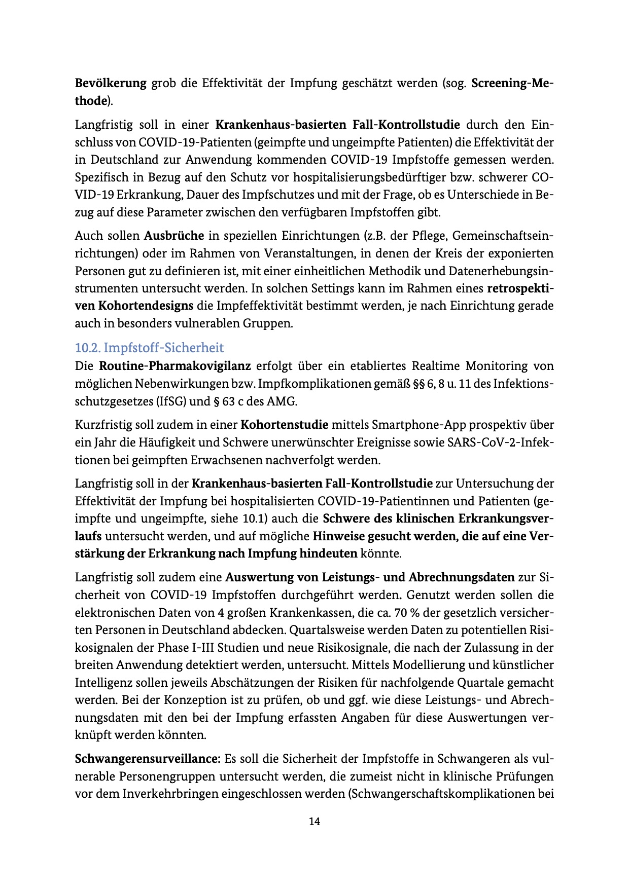 Die Bundesregierung, sowie alle an den Planungen beteiligten Organisationen, planen Senioren und Menschen mit Vorerkrankungen als erstes mit der Immunisierung zu versorgen. Danach folgen Beschäftigte im Gesundheitswesen sowie auch Berufsgruppen wie Polizisten, Feuerwehrleute, und Beschäftige in Lehrberufen.