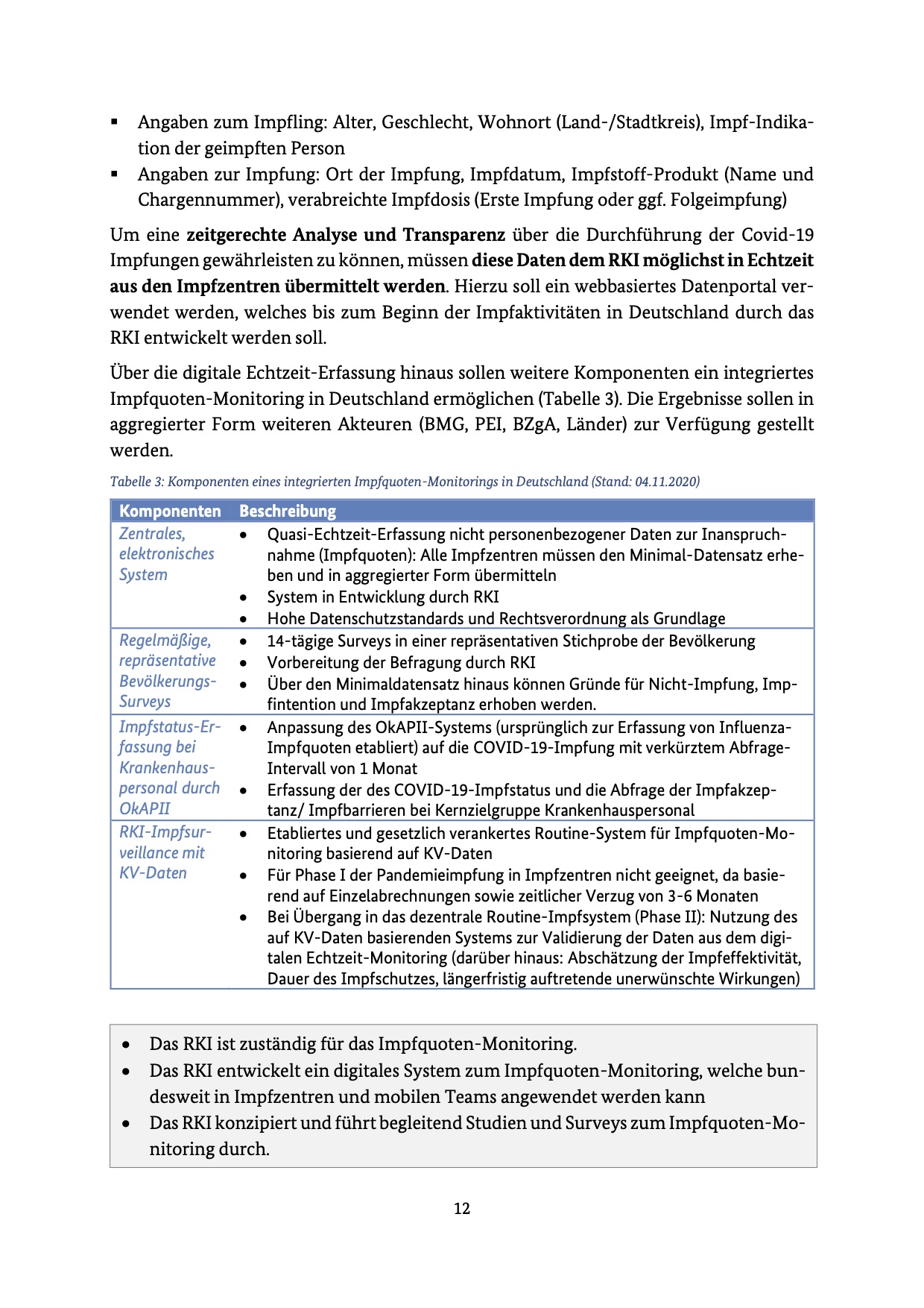 Zur Verabreichung werden im gesamten Bundesgebiet Impfzentren entstehen. Auch mobile Impftrupps wollen zum Einsatz kommen. Auch die Bundeswehr wird zum Transport und Aufbewahrung der Impfstoffe herangezogen werden.