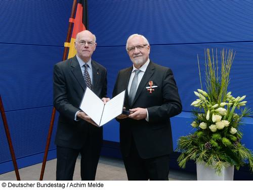 Bildunterschrift: Bundestagspräsident Prof. Dr. Norbert Lammert, (li), CDU/CSU, händigt die Ordensinsignien des Verdienstordens der Bundesrepublik Deutschland an Mitglieder und ehemalige Mitglieder des Deutschen Bundestages aus. Das Verdienstkreuz am Bande erhält Dr. Maximilian Lehmer, (re), CDU/CSU